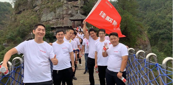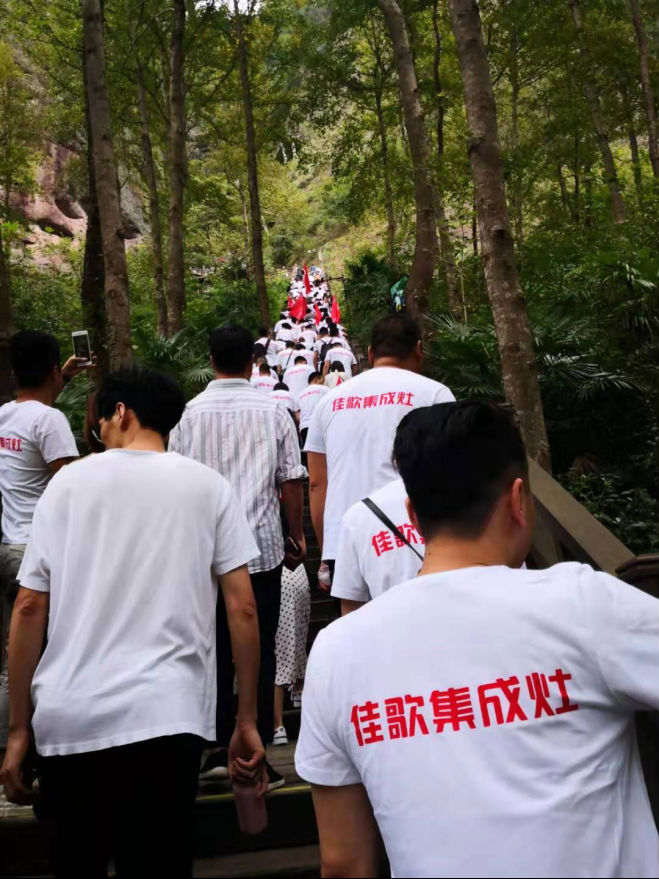 在緊張的工作中得到放松,感受綠水青山的風(fēng)景。10月6日,佳歌集成灶組織全體人員統(tǒng)一出發(fā)到新昌穿巖十九峰進(jìn)行團(tuán)建活動(dòng),統(tǒng)一的著裝展現(xiàn)出佳歌人的氣勢。