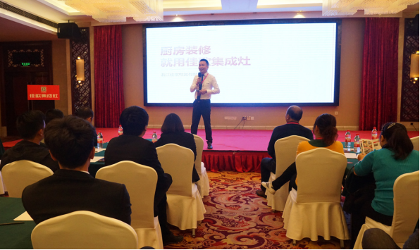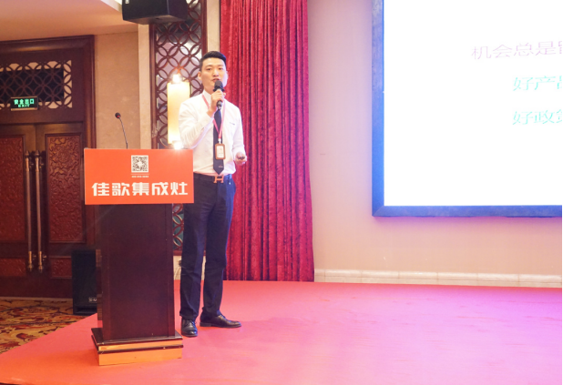本次會議由銷管部部長魏諜主持,佳歌集成灶總經(jīng)理袁海濱現(xiàn)場致辭,為大家講解了佳歌的品牌優(yōu)勢。佳歌集成灶營銷總經(jīng)理黃忠海就廚電市場與集成灶朝陽產(chǎn)業(yè)進(jìn)行市場分析及前景預(yù)測,幫助在座來賓了解廚電市場及集成灶行業(yè)發(fā)展趨勢及其潛在利潤空間。