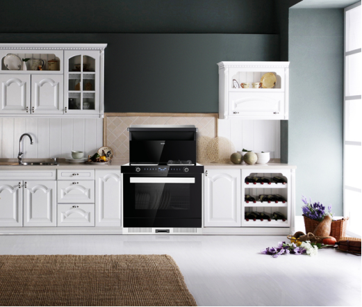 兩年后,煙機(jī)、灶具、消毒柜/蒸箱合為一體,只需要一個空間,廚房時尚又簡潔。