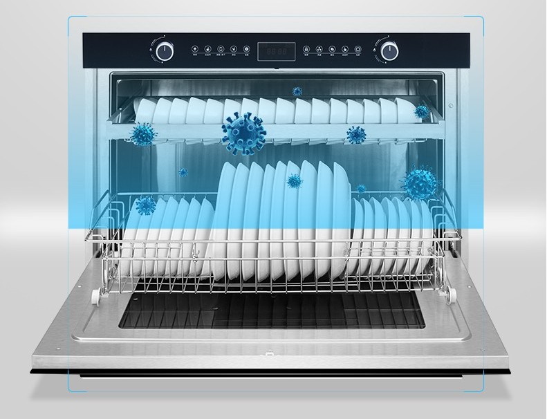 傳統(tǒng)的雙抽式消毒柜由于空間分隔的關(guān)系,導(dǎo)致7寸以上的子只能疊放,消毒烘干對中間的盤子根本無法起效,而10寸的大盤只能放在臺面上“流浪”。