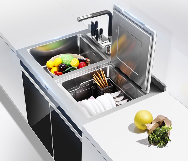 既然如此難以下決定,不如選擇佳歌集成水槽洗碗機。水槽本身就是廚房裝修必備的,何況它做到了水槽、洗碗機、果蔬凈化機三合一。一次洗凈6套餐具,滿足4-6口家庭所需洗碗需求。中式碗籃設(shè)計,深口面碗、敞口湯碗、復雜器具都一一包容。