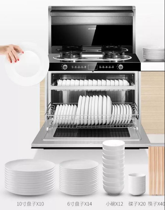 佳歌集成灶的100L超大容量消毒柜,整個(gè)內(nèi)腔都可放置碗盤。可以整整放下10個(gè)10寸盤子+14個(gè)6寸盤子+12個(gè)小碗+20個(gè)碟子+40只筷子。