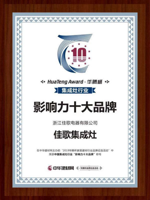 9月1日,由中華建材網(wǎng)主辦的“華騰杯”2019中國家居建材行業(yè)品牌征選活動完美收官!佳歌集成灶憑借過硬的品牌實力在此次評選中榮獲“2019中國集成灶影響力十大品牌”。