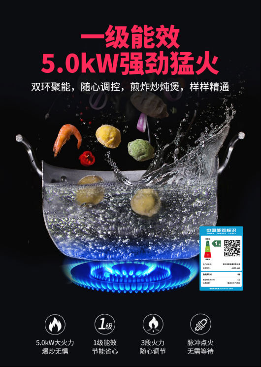 自主研發(fā)設(shè)計雙環(huán)純銅節(jié)能高效燃燒器,額定熱負(fù)荷達(dá)到5.0kW,突破火力臨界點(diǎn),遠(yuǎn)超國家一級能效標(biāo)準(zhǔn)。
