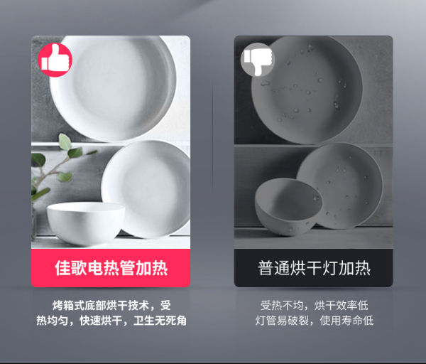 佳歌集成灶W1的100L超大容量一門式消毒柜,突破了雙門式消毒柜的高度限制,讓上下碗籃合為一體,整個內(nèi)腔都可放置碗盤,毫不擁擠!