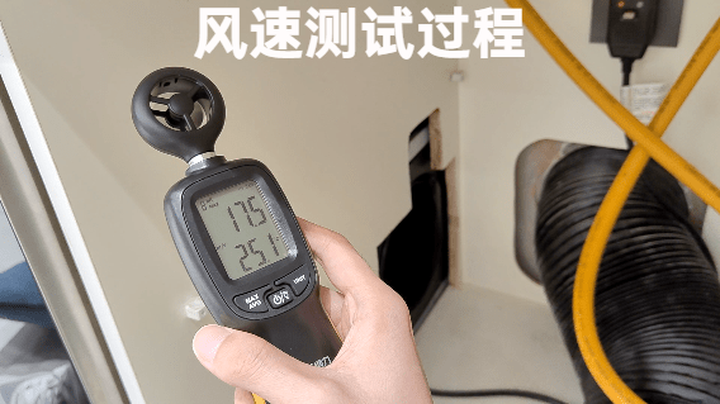 最后我們準(zhǔn)備了風(fēng)速儀采集佳歌A6DZK的風(fēng)量數(shù)據(jù),得出的數(shù)值和官方標(biāo)稱的二檔風(fēng)量18m?/min,增壓檔21m?/min相差不大。